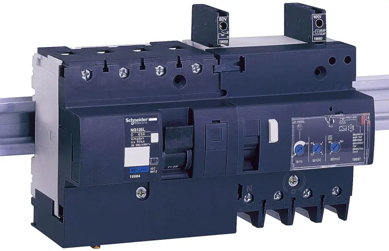 Автоматический выключатель NG125L D 63A 4p. серия продукта: NG125 - диапазон: Acti 9 - тип устройства или его аксессуаров: миниатюрный автоматический выключатель - краткое название устройства: NG125L - область применения: распределение - положение нейтрали: слева - тип сети: постоянный ток, переменный ток - технология блока контроля и управления: термомагнитный - отключающая способность: 36 кА Icu в соответствии с EN/IEC 60947-2 - <= 500 V постоянный ток, 100 кА Icu в соответствии с EN/IEC 60947-2 - 220...240 V переменный ток 50/60 Гц, 50 кА Icu в соответствии с EN/IEC 60947-2 - 380...415 V переменный ток 50/60 Гц, 15 кА Icu в соответствии с EN/IEC 60947-2 - 500 V переменный ток 50/60 Гц, 40 кА Icu в соответствии с EN/IEC 60947-2 - 440 V переменный ток 50/60 Гц. Преимущества: Максимальные возможности в модульном исполнении Обладая преимуществом простоты монтажа при модульном исполнении, автоматические выключатели NG125 сочетают производительность и прочность, необходимые в большинстве требовательных промышленных электрических установок.... применения: Обеспечение защиты в любых зданиях промышленных предприятий и организаций сферы услуг:, Защита вводов в модульном шкафе, Выводы в силовых распределительных щитах....