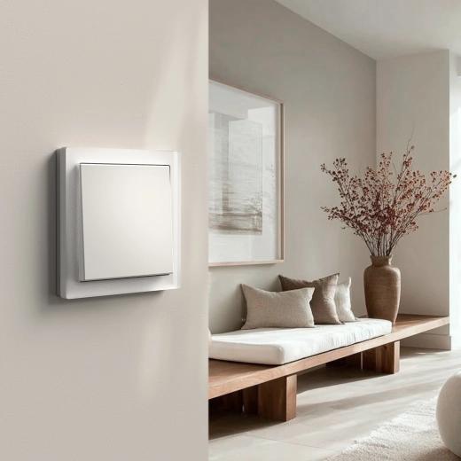 Одноклавишный выключатель в комплекте с рамкой (Белый)