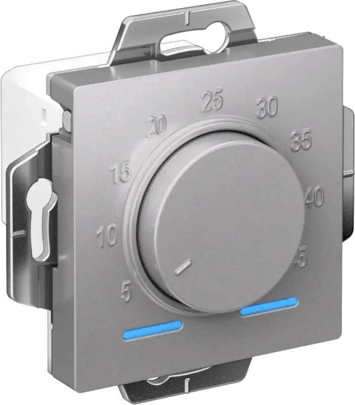 Термостат Systeme Electric (ранее Schneider Electric) серии AtlasDesign электронный для теплого пола, с датчиком, 10 A в цвете алюминий обеспечит комфортное регулирование температуры пола и идеально впишется в интерьер помещений. Ном. напряжение: 230 В. Частота: 50 Гц. Электронная защита от перенапряжения. Диапазон регулирования: от +5 до +45 °С. Датчик температуры пола в комплекте (кабель 2,5 м), тип NTC. Степень защиты от пыли и влаги: IP20.