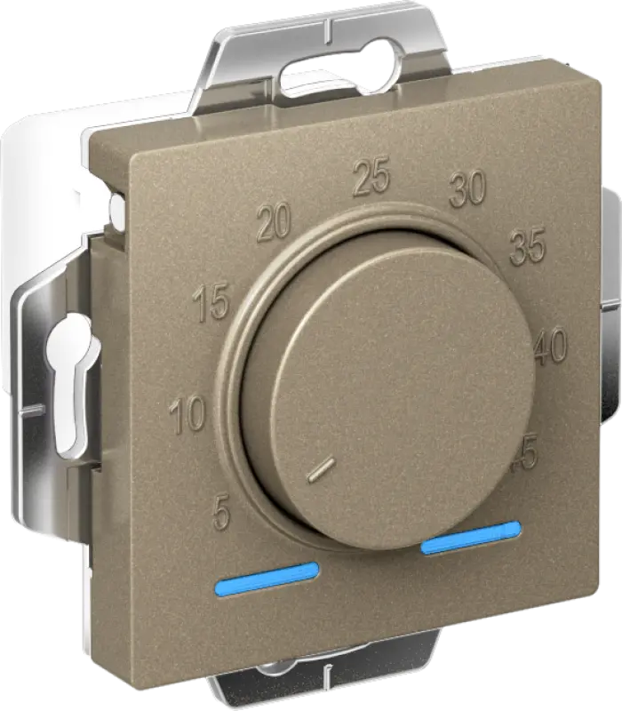 Термостат Systeme Electric (ранее Schneider Electric) серии AtlasDesign электронный для теплого пола, с датчиком, 10 A в цвете шампань обеспечит комфортное регулирование температуры пола и идеально впишется в интерьер помещений. Ном. напряжение: 230 В. Частота: 50 Гц. Электронная защита от перенапряжения. Диапазон регулирования: от +5 до +45 °С. Датчик температуры пола в комплекте (кабель 2,5 м), тип NTC. Степень защиты от пыли и влаги: IP20.