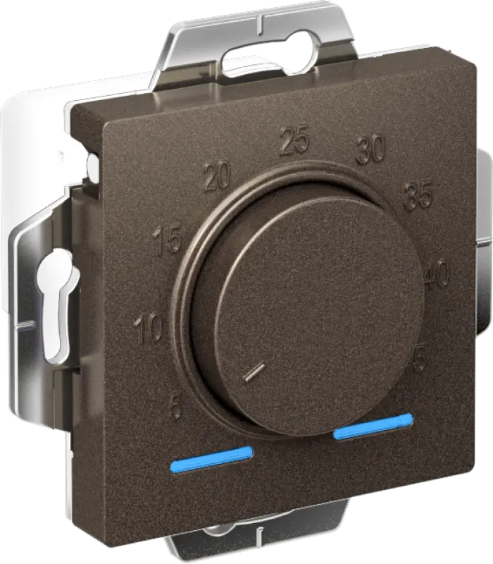 Термостат Systeme Electric (ранее Schneider Electric) серии AtlasDesign электронный для теплого пола, с датчиком, 10 A в цвете мокко обеспечит комфортное регулирование температуры пола и идеально впишется в интерьер помещений. Ном. напряжение: 230 В. Частота: 50 Гц. Электронная защита от перенапряжения. Диапазон регулирования: от +5 до +45 °С. Датчик температуры пола в комплекте (кабель 2,5 м), тип NTC. Степень защиты от пыли и влаги: IP20.