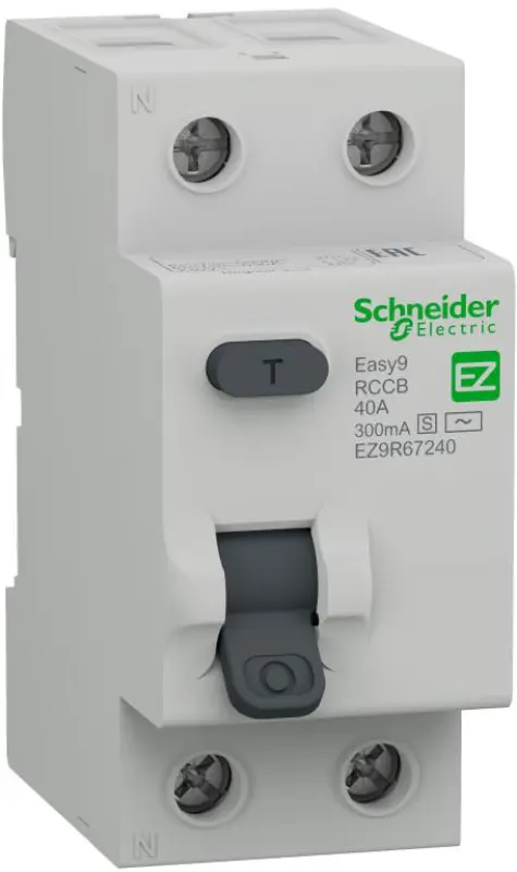 Селективный выключатель дифференциального тока (ВДТ/ УЗО) серии Easy9 Schneider Electric, 2-полюсный, номинальный ток 40А, ток утечки 300 мА, тип АС-S, ширина 2х18 мм.
