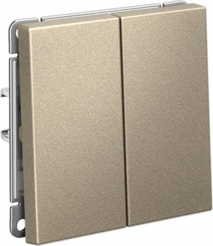 Механизм Systeme Electric серии ArtGallery в цвете шампань выключателя 2-клавишного с самовозвратом подходит для сетей 250 В, на ток 10 А.