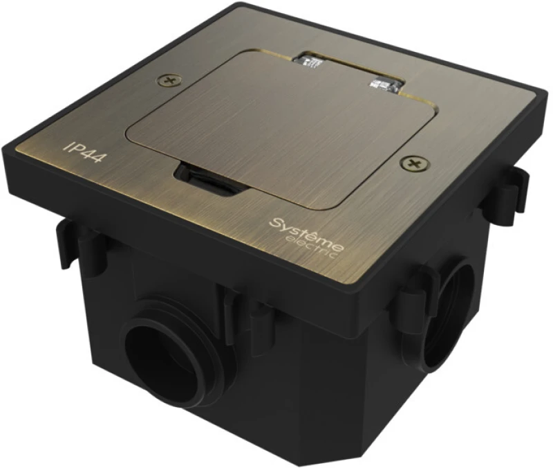MultiDesk Лючок на 2 модуля IP44 с монтажной коробкой для бетонных полов Античная ЛАТУНЬ, тип MDK20