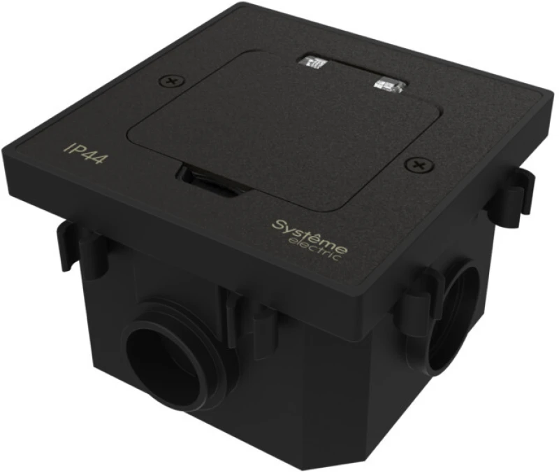 MultiDesk Лючок на 2 модуля IP44 с монтажной коробкой для бетонных полов ЧЁРНЫЙ матовый, тип MDK20