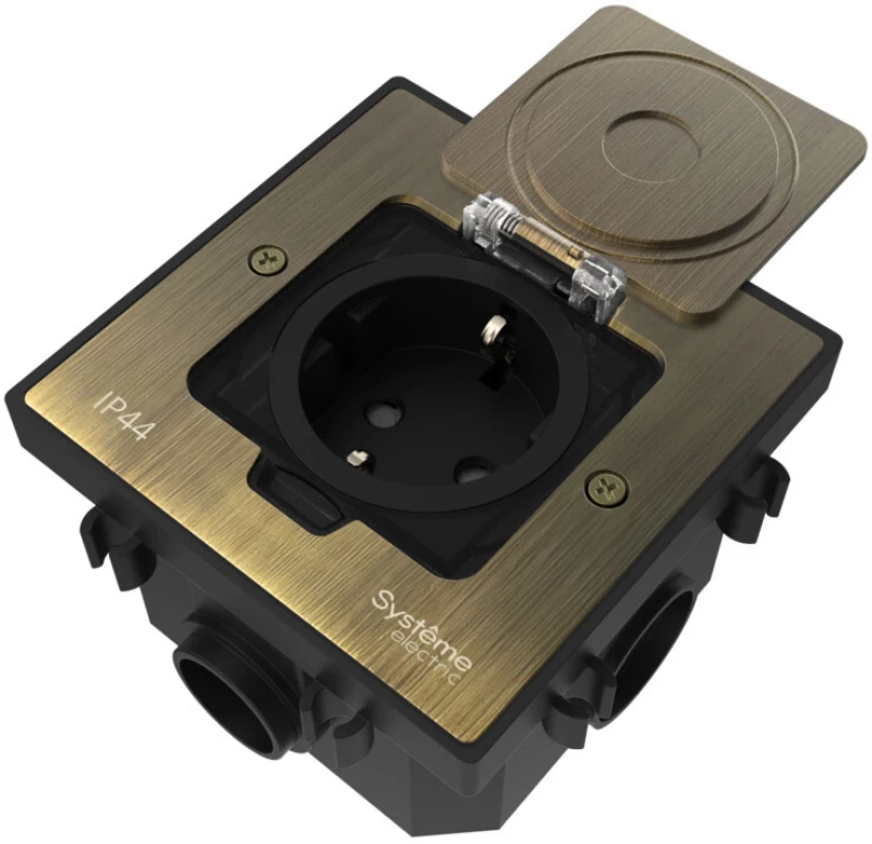 MultiDesk Лючок с розеткой 2К+З, 16А/250В, IP44 с монтажной коробкой для бетонных полов Античная лат