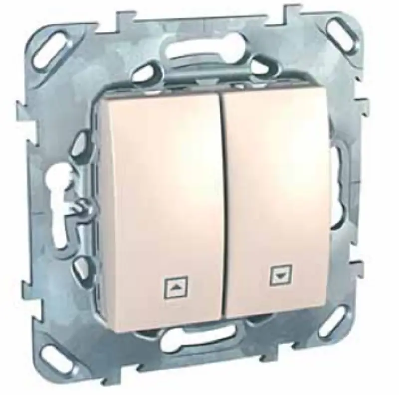Выключатель двухклавишный для жалюзи Schneider Electric UNICA (бежевый) без подсветки предназначен для сетей до 250 В на ток до 10 А.