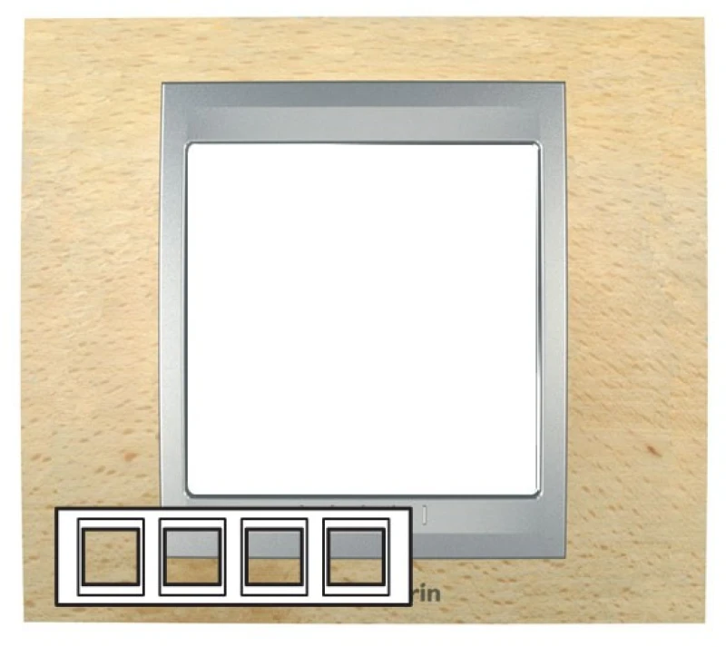 Рамка Unica Top, горизонтальная 4 поста - бук с алюминиевой вставкой