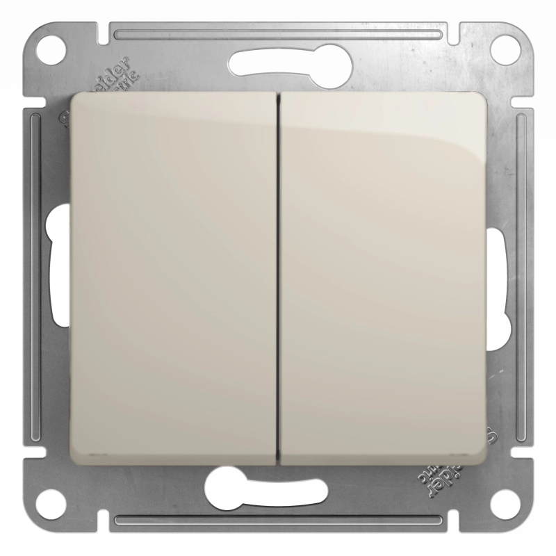 Механизм Schneider Electric Glossa (цвет молочный) переключателя 2-клавишного подходит для сетей 250 В, на ток 10 А.