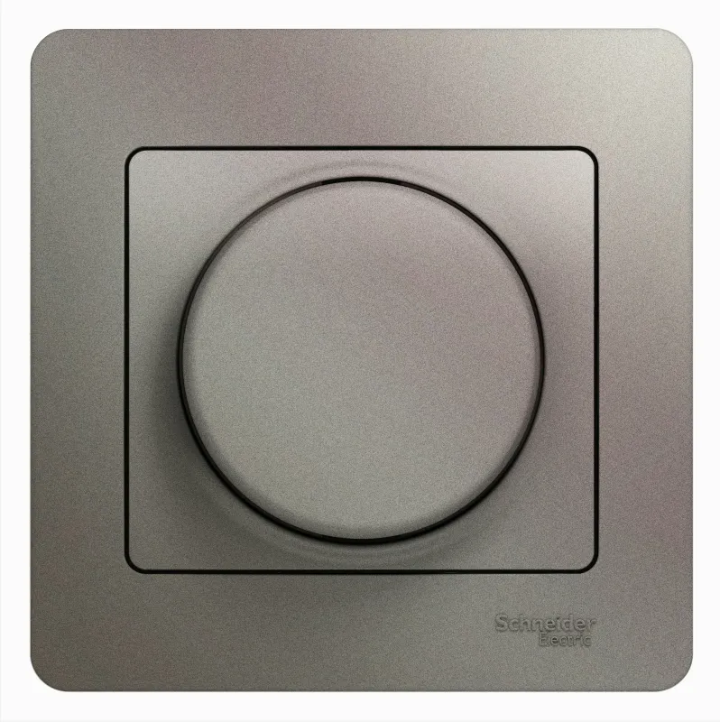 Светорегулятор Schneider Electric Glossa (в сборе, цвет платина) поворотный для нагрузки мощностью до 630 Вт, подходит для LED ламп.