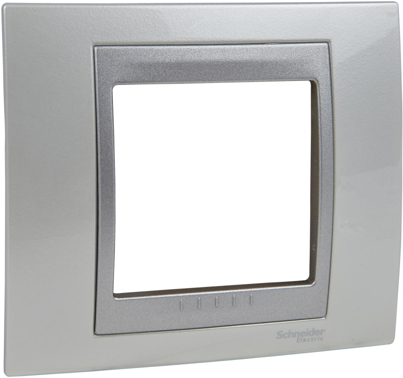 Рамка Schneider Electric UNICA TOP (нордик) одинарная с алюминиевой декоративной вставкой.